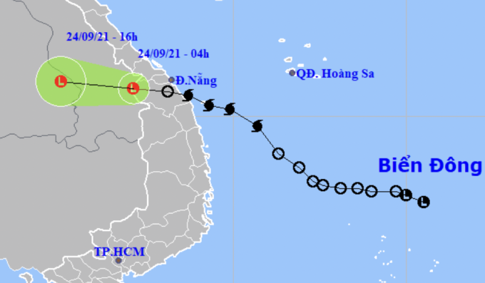 Hoàn lưu vùng áp thấp kết hợp với đới gió Đông nên sáng 24/9 ngoài khơi từ Quảng Trị đến Quảng Ngãi còn gió giật cấp 6-7. Vịnh Bắc Bộ có gió mạnh cấp 5, sóng biển cao 2-3 m.