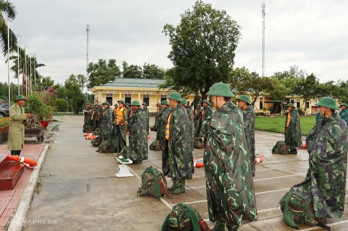 Bộ đội Thừa Thiên Huế triển khai ứng phó với bão Dianmu ngày 23/9. Ảnh: Ngọc Thạnh