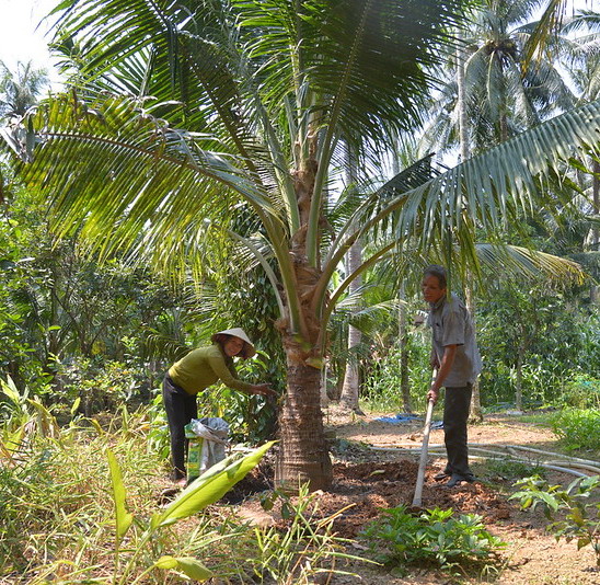 Thành viên HTXNN Ngọc An trồng dừa theo hướng hữu cơ phục vụ HTX chế biến sản phẩm.