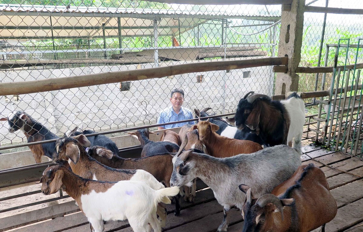Đàn dê tại Hợp tác xã chăn nuôi động vật bản địa tại xóm Gốc Gạo, xã Tức Tranh (Phú Lương, Thái Nguyên)