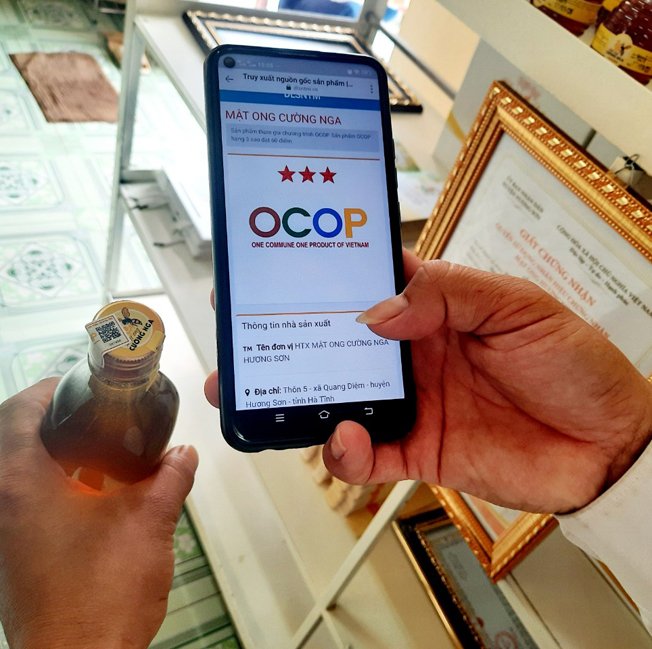 Sản phẩm mật ong của HTX Mật ong Cường Nga (xã Quang Diệm, huyện Hương Sơn) đã được gắn mã QR truy xuất nguồn gốc.