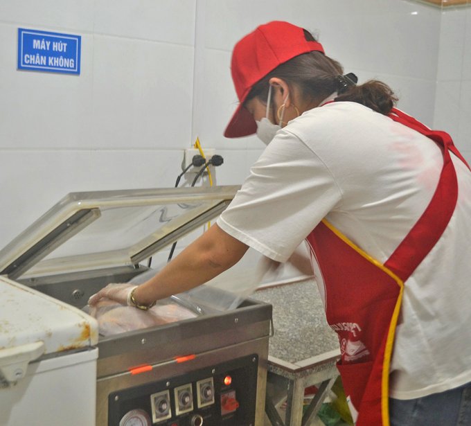 Quá trình sơ chế gà tươi Hiền Tâm đảm bảo vệ sinh an toàn thực phẩm.