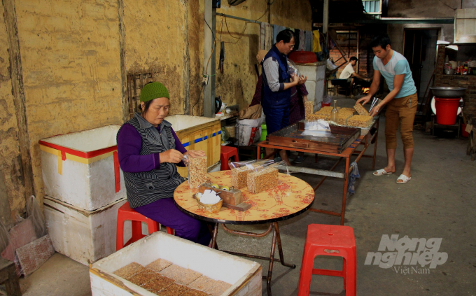 Các xã viên Hợp tác xã Khẩu Sli thương mại dịch vụ Nà Giàng sản xuất bánh Khẩu Sli. Ảnh: Công Hải.