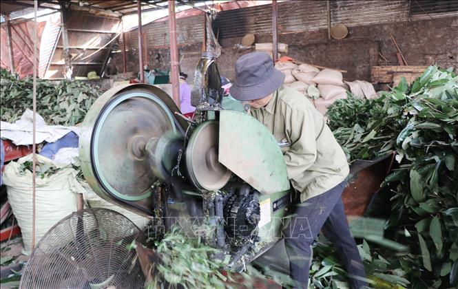 Chế biến sản phẩm từ cây quế tại Công ty TNHH Vũ Hoa, Thị trấn Chợ Chu, huyện Định Hóa.