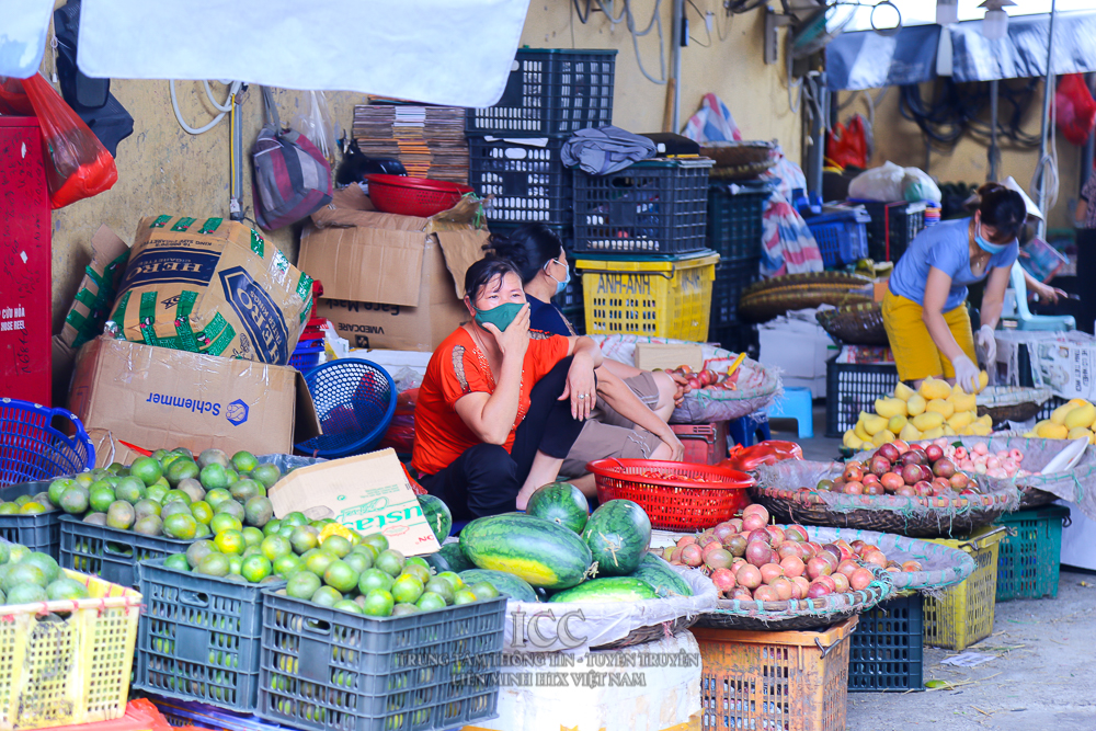 Hầu hết các gian hàng trong chợ đều đã mở cửa, tuy nhiên đang rơi vào tình trạng vắng khách, chỉ có người bán mà vắng người mua