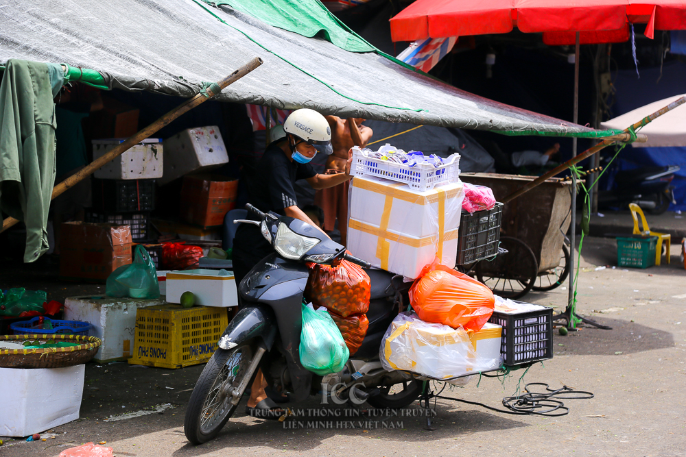 Chợ Long Biên kém phần nhộn nhịp hơn trước do ảnh hưởng của dịch bệnh