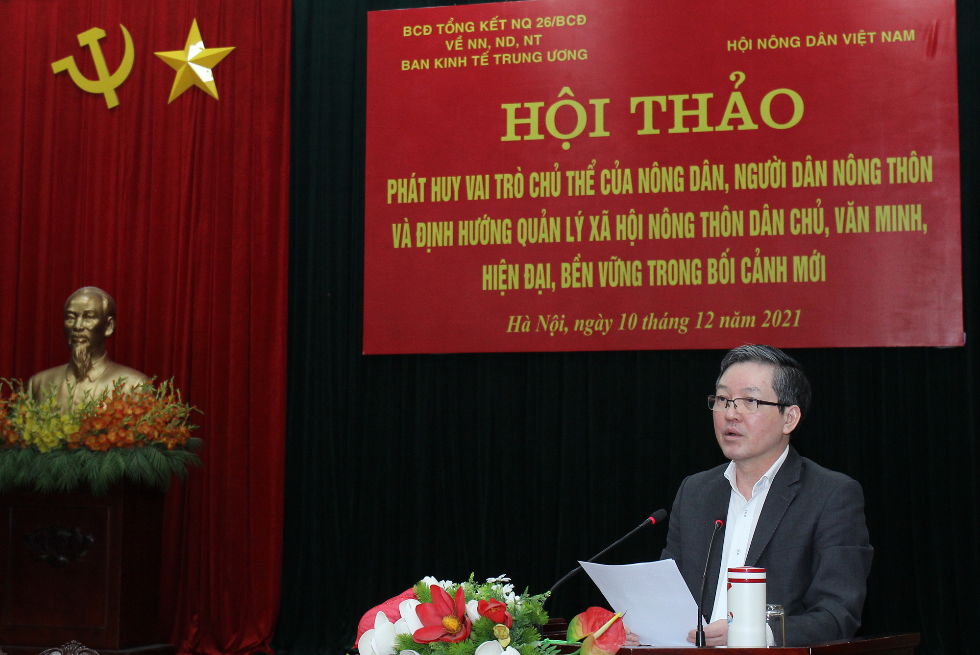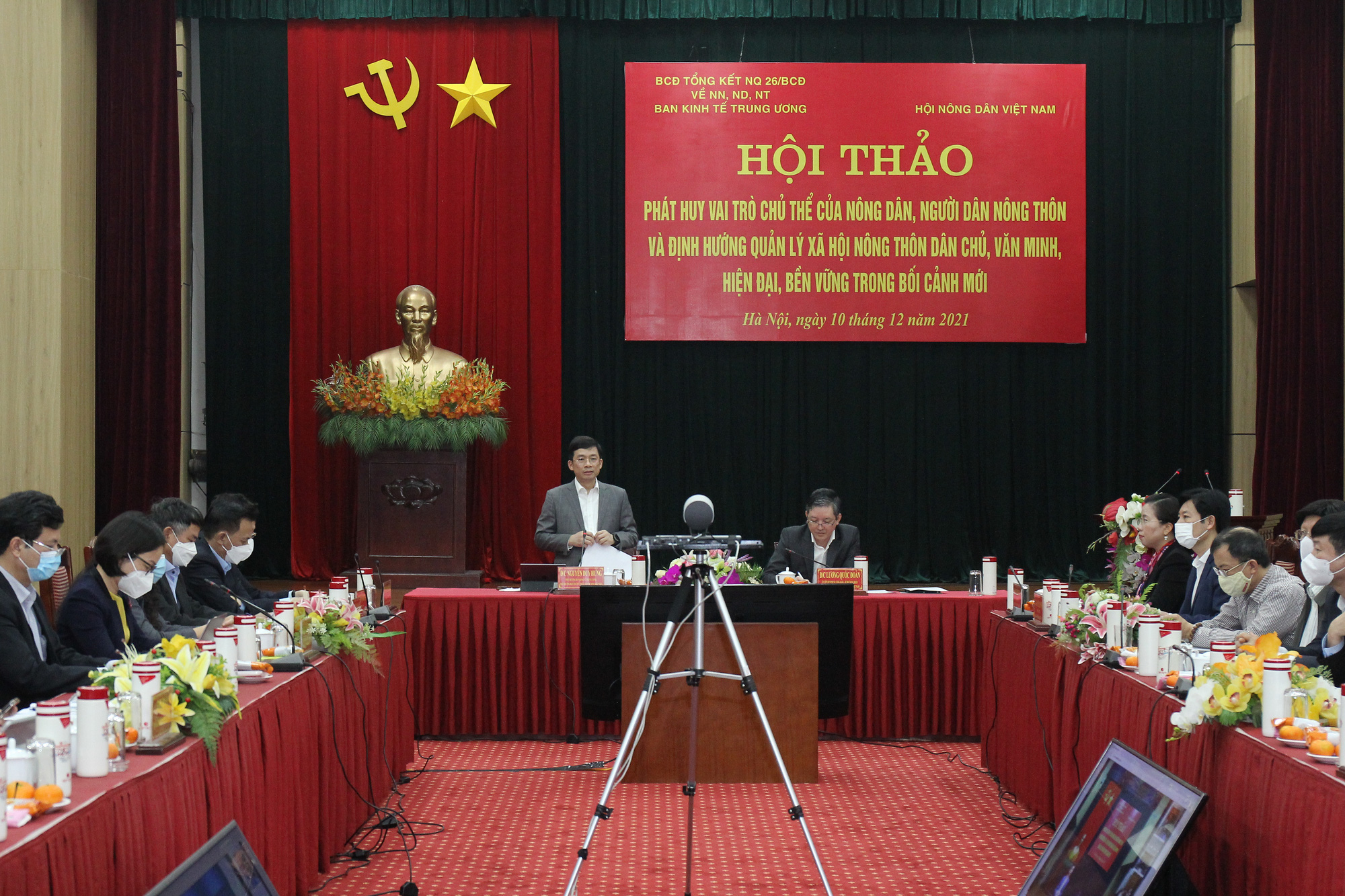 Đồng chí Lương Quốc Đoàn – Uỷ viên Trung ương Đảng, Bí thư Đảng đoàn, Chủ tịch Ban Chấp hành Trung ương Hội Nông dân Việt Nam, thành viên Ban Chỉ đạo Trung ương tổng kết Nghị quyết 26 cùng đồng chí Nguyễn Duy Hưng – Phó Trưởng Ban Kinh tế Trung ương, Phó trưởng Ban Chỉ đạo Trung ương tổng kết Nghị quyết 26 chủ trì Hội thảo.
