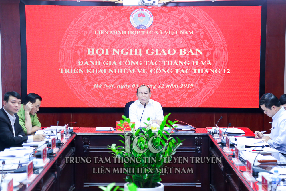 Chiều ngày 3/12, tại trụ sở Liên minh HTX Việt Nam, đồng chí Nguyễn Ngọc Bảo, Bí thư Đảng đoàn, Chủ tịch Liên minh HTX Việt Nam chủ trì hội nghị giao ban đánh giá công tác tháng 11 và triển khai nhiệm vụ tháng 12 năm 2019 của Liên minh HTX Việt Nam về triển khai thực hiện các Đề án; và các công việc theo chức năng, nhiệm vụ.