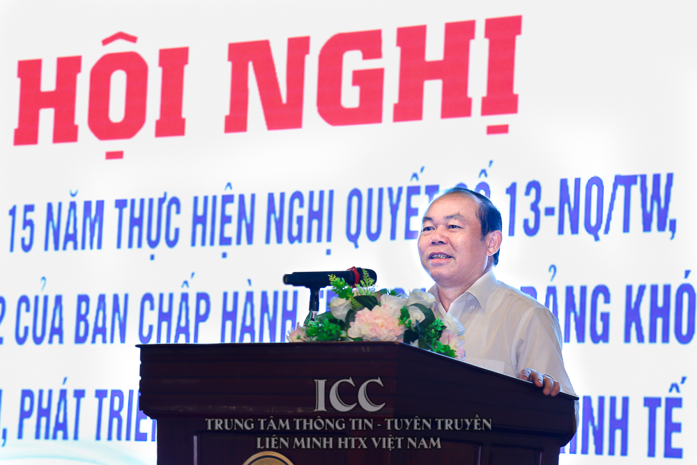 Đồng chí Nguyễn Ngọc Bảo, Phó Trưởng Ban Chỉ đạo Đổi mới, phát triển kinh tế tập thể, hợp tác xã; Bí thư Đảng đoàn, Chủ tịch Liên minh HTX Việt Nam phát biểu chỉ đạo hội nghị