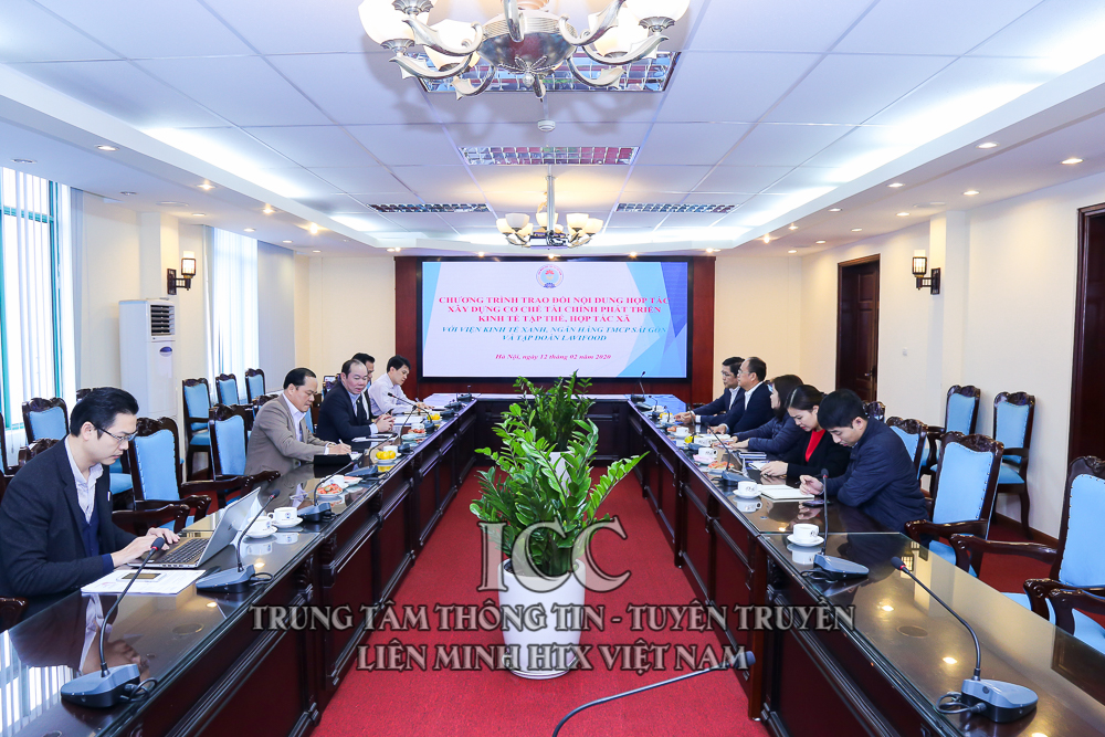 Với mong muốn kết nối các nguồn lực, nghiên cứu đề xuất các cơ chế chính sách trong đó có chính sách tài chính tín dụng phục vụ mục tiêu phát triển bền vững các hợp tác xã kiểu mới, thúc đẩy sự phát triển của các ngành kinh tế xanh gắn liền với kinh tế hợp tác, Viện kinh tế xanh đã trao đổi cùng Ngân hàng cổ phần Sài Gòn (SCB), Công ty cổ phần Lavifood về việc hợp tác cùng Liên minh HTX Việt Nam xây dựng cơ chế tài chính thực hiện các dự án phát triển hợp tác xã, nông nghiệp, nông thôn Việt Nam.