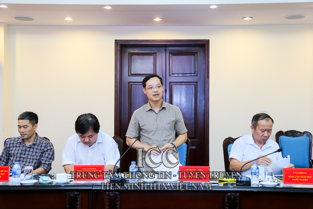 Đồng chí Trương Anh Dũng, Phó Tổng Cục trưởng Tổng Cục giáo dục nghề nghiệp phát biểu tại buổi làm việc với Liên minh HTX Việt Nam