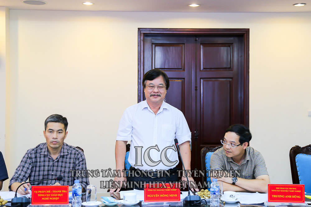Đồng chí Nguyễn Hồng Minh, Tổng Cục trưởng Tổng Cục giáo dục nghề nghiệp phát biểu tại buổi làm việc với Liên minh HTX Việt Nam