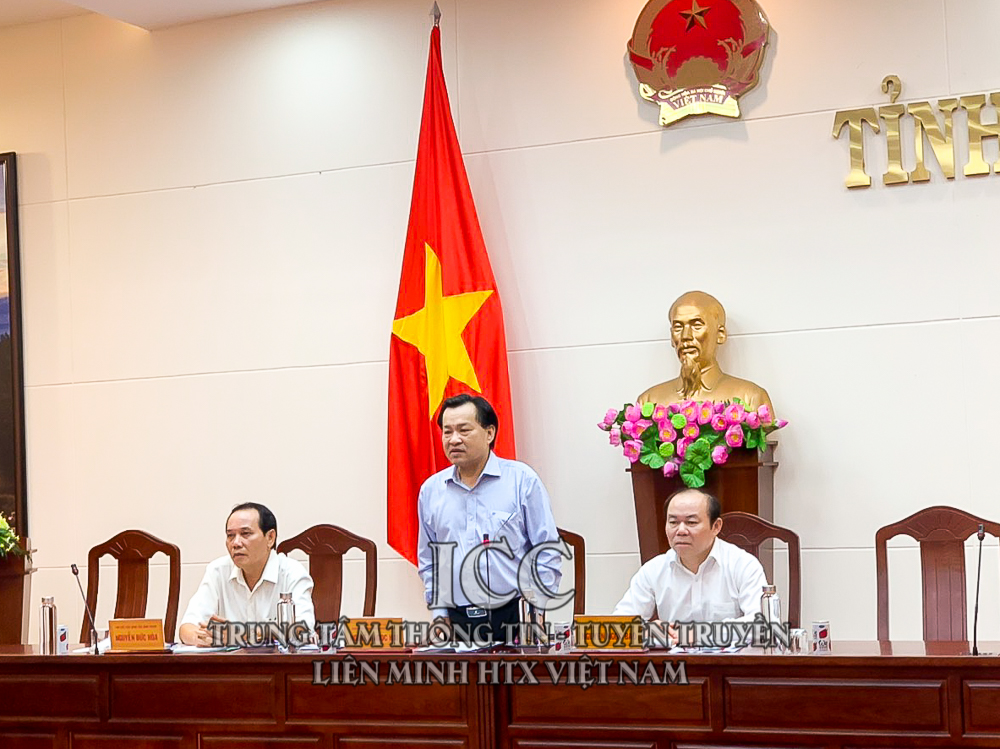 Chủ tịch Nguyễn Ngọc Bảo, Bí thư Đảng đoàn, Chủ tịch Liên minh HTX Việt Nam phát biểu tại buổi làm việc với UBND tỉnh Bình Thuận