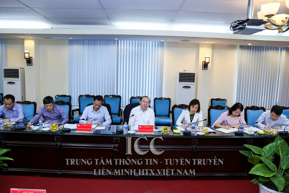 Đồng chí Nguyễn Ngọc Bảo, Bí thư Đảng đoàn, Chủ tịch Liên minh HTX Việt Nam phát biểu tại buổi làm việc