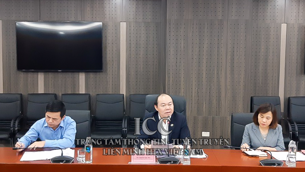 Đồng chí Nguyễn Ngọc Bảo, Bí thư Đảng đoàn, Chủ tịch Liên minh HTX Việt Nam phát biểu tại buổi làm việc