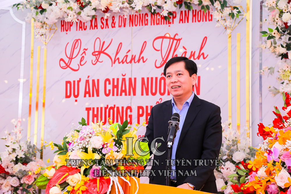 Phát biểu tại buổi lễ, Chủ tịch Nguyễn Ngọc Bảo gửi lời cảm ơn đến lãnh đạo UBND tỉnh Lạng Sơn, UBND thành phố Lạng Sơn, các Sở Ngành đã quan tâm tạo điều kiện thuận lợi giúp đỡ và hỗ trợ các HTX trên địa bàn tỉnh trong thời gian vừa qua; đặc biệt là HTX sản xuất và dịch vụ nông nghiệp An Hồng trong quá trình triển khai thực hiện dự án. Chủ tịch Bảo đánh giá đây là một dự án được đầu tư một cách bài bản, tập trung, rất đúng thời điểm; có tiềm năng để nhân rộng trên toàn quốc. Liên minh HTX Việt Nam sẽ tiếp tục quan tâm và luôn đồng hành cùng các bước đi của HTX, cũng như hỗ trợ các HTX trên địa bàn tỉnh về mặt công nghệ, đào tạo, tuyên truyền,…