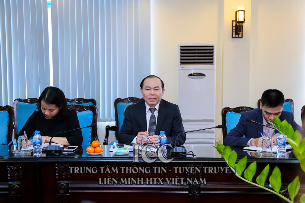 Đồng chí Nguyễn Ngọc Bảo, Chủ tịch Liên minh Hợp tác xã Việt Nam phát biểu tại buổi làm việc