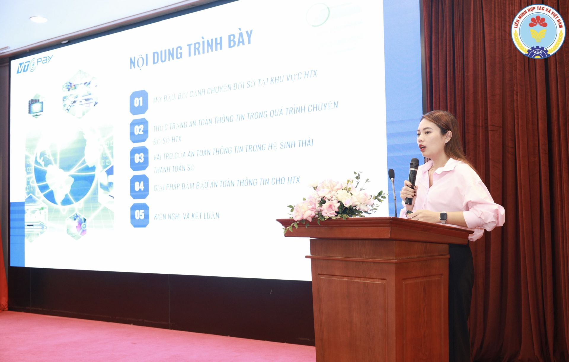 Đáng chú ý, yếu tố an toàn, an ninh mạng được các tham luận đặt ở vị trí trung tâm của quá trình chuyển đổi số. Viện Khoa học Kinh tế hợp tác chỉ ra rằng nhiều HTX hiện chưa có quy chế quản lý, bảo mật thông tin, chưa có quy trình sao lưu, phục hồi dữ liệu, thiếu các giải pháp bảo mật cơ bản như phân quyền truy cập hay xác thực đa yếu tố. Trong khi đó, khi tham gia sâu hơn vào môi trường số, HTX lại ngày càng phải đối mặt rõ hơn với các nguy cơ như lừa đảo trực tuyến, giả mạo đối tác, chiếm đoạt tài khoản, rò rỉ dữ liệu và giả mạo thương hiệu. Từ góc độ doanh nghiệp công nghệ, bà Vũ Thị Thuý Phương - Trưởng phòng Kinh doanh Ví điện tử VTC Pay -Tổng công ty VTC nhấn mạnh an toàn thông tin không chỉ là yêu cầu kỹ thuật, mà là điều kiện tiên quyết để xây dựng niềm tin số, bảo vệ tài sản tài chính và bảo đảm tính liên tục trong hoạt động của HTX. Doanh nghiệp này đề xuất các nhóm giải pháp như hoàn thiện xác thực và quản lý danh tính số, giám sát giao dịch bất thường, mã hóa dữ liệu, sao lưu định kỳ, phân quyền theo vai trò và nâng cao nhận thức an toàn thông tin cho người dùng.