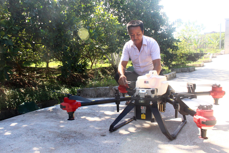 Anh Lê Ngọc Hoàng (thôn Cổ Trâu, xã Nam Phong, huyện Phú Xuyên, thành phố Hà Nội) cho biết: "Năm 2020, tôi mua một chiếc máy bay không người lái chuyên phun thuốc bảo vệ thực vật, chế phẩm sinh học cho diện tích 7 mẫu đất với 500 gốc bưởi, 300 gốc nhãn, 100 gốc ổi và ao thả cá. Nếu trước đây phải thuê 14-15 nhân công lao động để làm việc này thì nay trong 2 giờ, máy bay đã phun xong toàn bộ". Việc này góp phần giúp mỗi năm gia đình anh Hoàng thu tiền tỷ nông nghiệp…