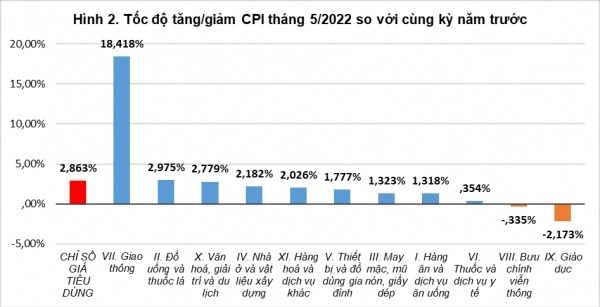 Theo số liệu của Tổng cục Thống kê, bình quân 5 tháng đầu năm nay, chỉ số giá tiêu dùng (CPI) tăng 2,25% so với cùng kỳ 2021, cao hơn mức tăng 1,29% của 5 tháng đầu năm 2021. Riêng tháng 5, CPI tháng tăng 0,38%.