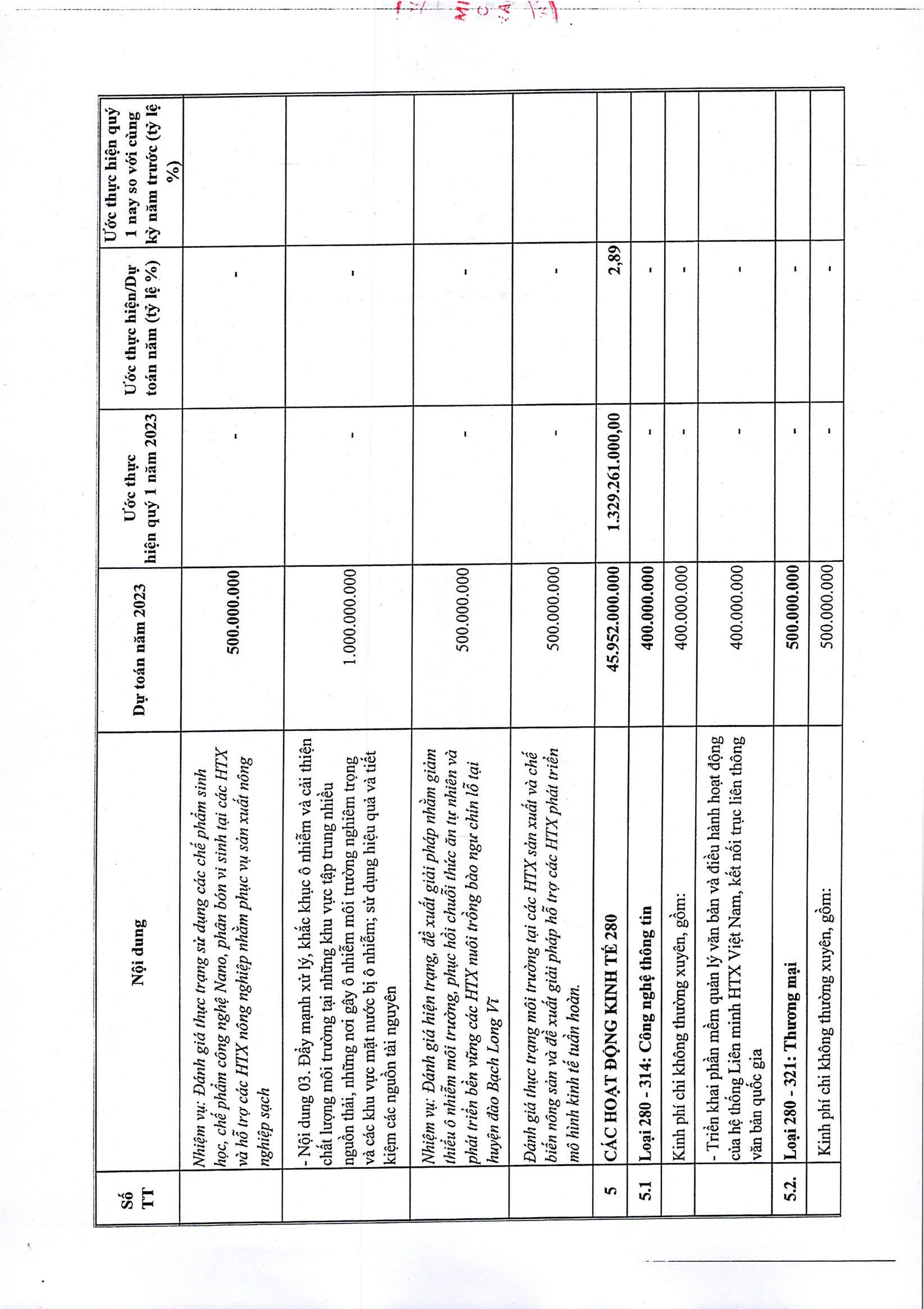 - Công bố công khai dự toán NSNN được giao năm 2023 của Văn phòng Liên minh HTX Việt Nam