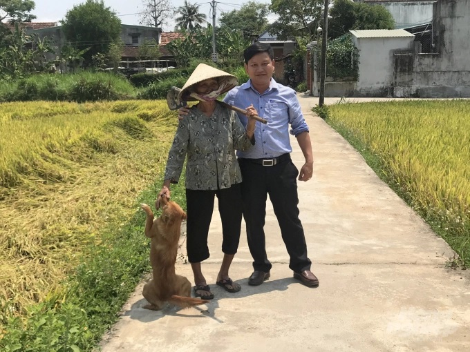 Mỗi khi cụ Điểu ra đồng con chó đi theo để bầu bạn với cụ. Ảnh: Vũ Đình Thung.