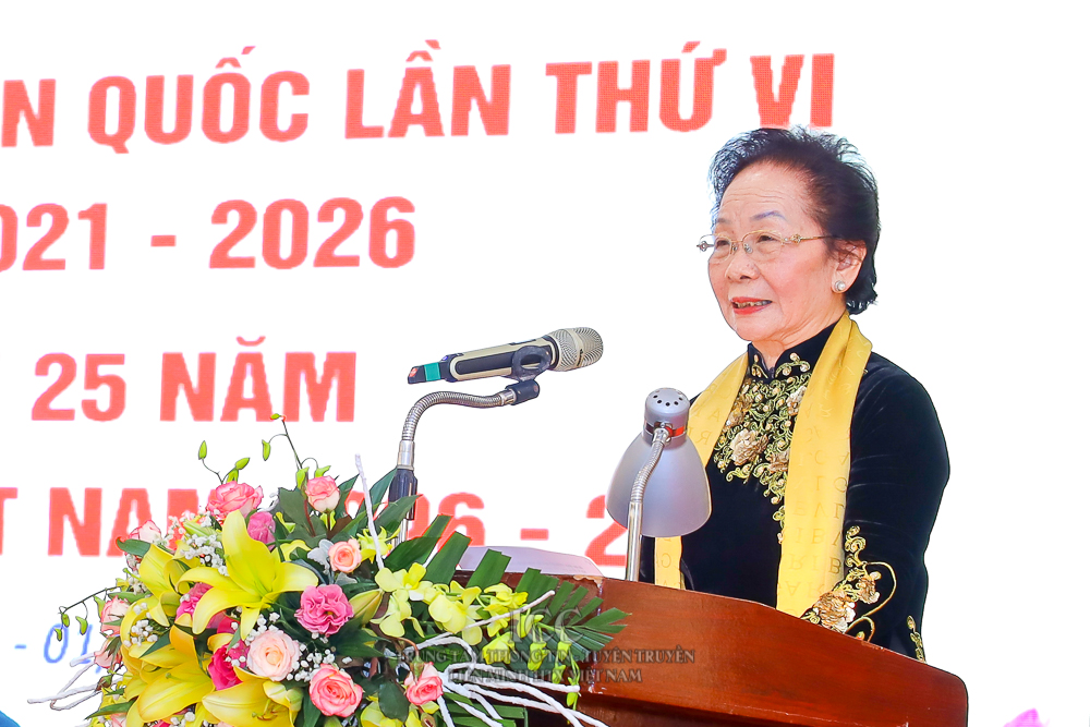 GS.TS Nguyễn Thị Doan, Chủ tịch Hội Khuyến học Việt Nam phát biểu tại Đại hội