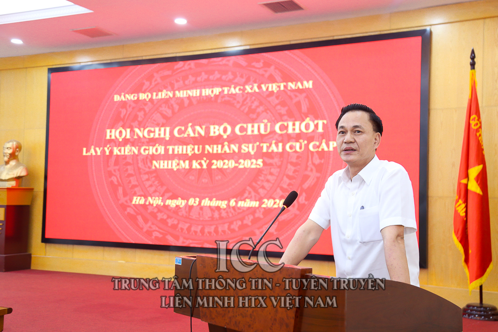Chiều ngày 3/6, tại trụ sở Liên minh HTX Việt Nam đã diễn ra Hội nghị lấy phiếu giới thiệu nhân sự tái cử và nhân sự lần đầu tham gia Ban chấp hành Đảng bộ; Ban Thường vụ Đảng ủy; Bí thư; Phó Bí thư; Chủ nhiệm, Phó Chủ nhiệm Ủy ban Kiểm tra Đảng uỷ; Ủy viên Uỷ ban Kiểm tra Đảng ủy Liên minh HTX Việt Nam, nhiệm kỳ 2020-2025.