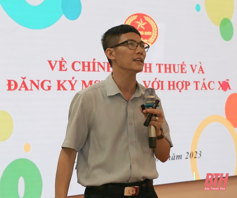 Tại hội nghị, cán bộ Cục Thuế tỉnh Thanh Hoá đã phổ biến một số chính sách thuế và cách đăng ký mã số thuế cho đại diện các HTX.
