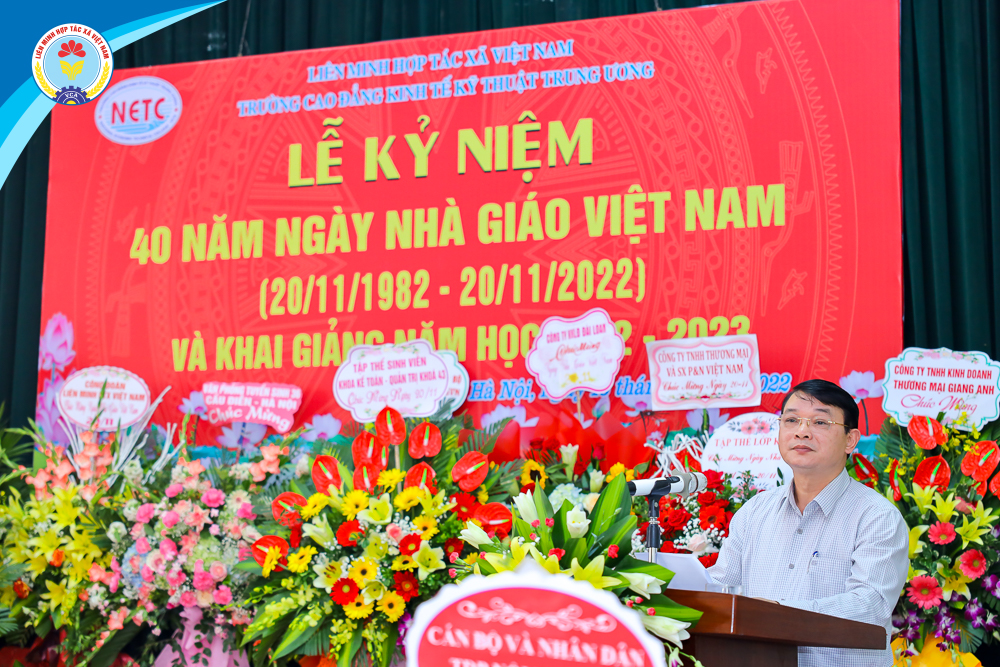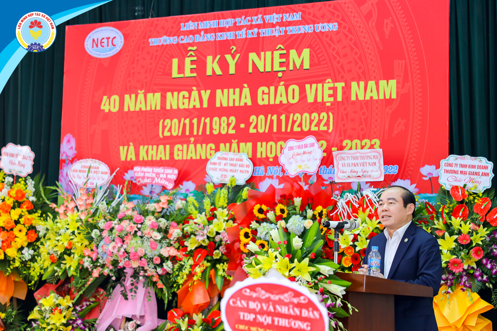 Phát biểu chào mừng, đồng chí Nguyễn Ngọc Bảo, Bí thư Đảng đoàn, Chủ tịch Liên minh HTX Việt Nam đã ghi nhận những đóng góp của thầy, trò Nhà trường Cao đẳng Kinh tế Kỹ thuật TW cho lĩnh vực kinh tế tập thể, HTX. Bên cạnh đó, Chủ tịch Liên minh Hợp tác xã Việt Nam mong rằng thầy và trò trường Cao đẳng Kinh tế Kỹ thuật TW sẽ cố gắng phát huy hơn nữa những lợi thế vốn có, luôn có sự đam mê, sáng tạo trong học tập và rèn luyện.