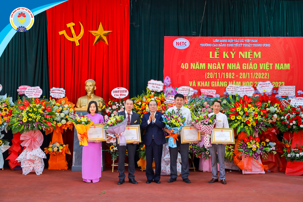 Nhân dịp này, Liên minh Hợp tác xã Việt Nam tặng Bằng khen cho 2 tập thể và 4 cá nhân đã có thành tích hoàn thành xuất sắc nhiệm vụ trong năm học 2021 - 2022.