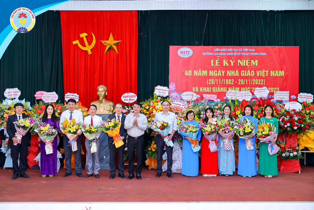 Tham dự buổi lễ, đồng chí Nguyễn Ngọc Bảo – Bí thư Đảng đoàn, Chủ tịch Liên minh Hợp tác xã Việt Nam, lãnh đạo các ban thuộc Liên minh Hợp tác xã Việt Nam; đồng chí Nguyễn Danh Hùng – Bí thư Đảng bộ bộ phận, Hiệu trưởng Nhà trường, cùng toàn thể cán bộ, giảng viên và các em học sinh, sinh viên tiêu biểu của trường.