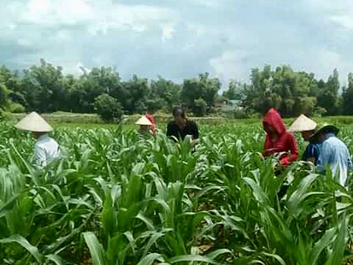 Học viên lớp kỹ thuật trồng ngô tại xã Thanh Nưa (huyện Ðiện Biên) thực hành trên mô hình sản xuất.