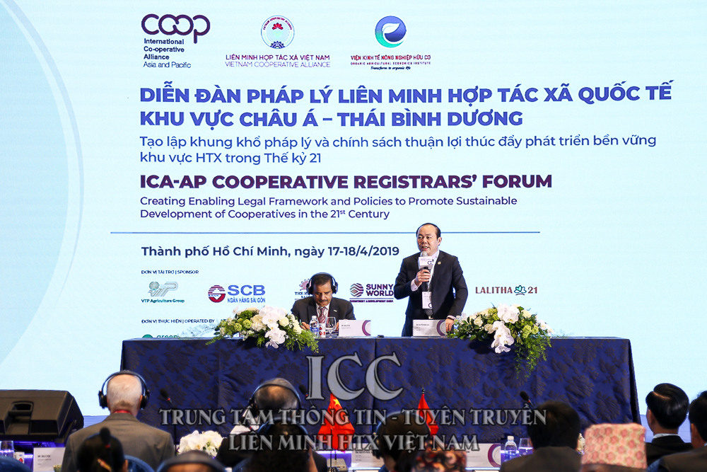 Chủ trì Diễn đàn Pháp lý Liên minh HTX quốc tế khu vực châu Á - Thái Bình Dương phiên thứ nhất sáng ngày 17/4, tại TP. HCM, Việt Nam