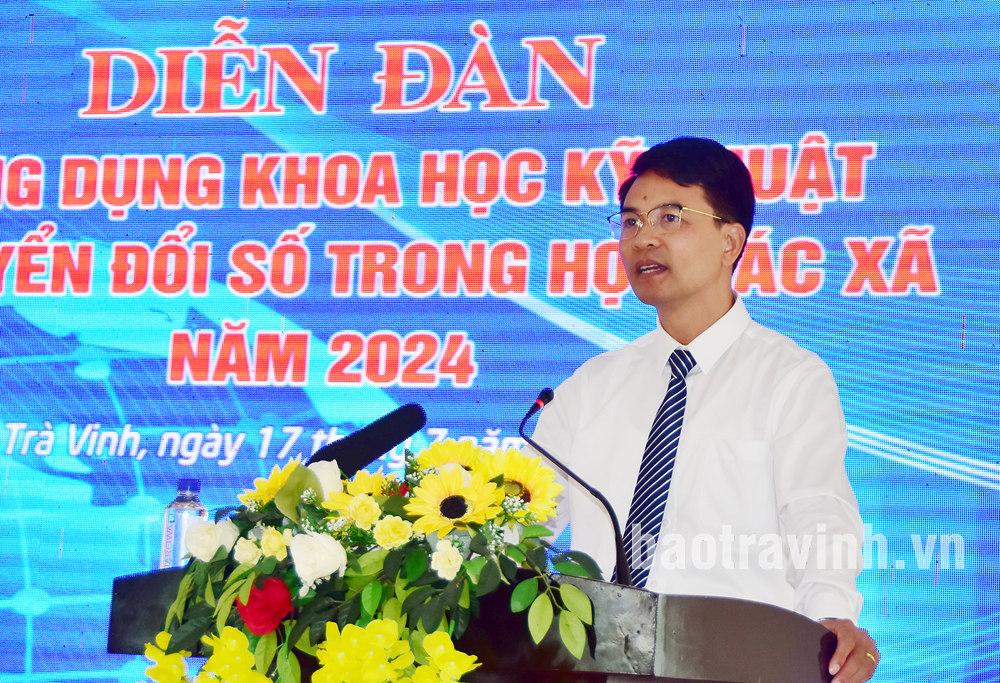 Sáng ngày 17/7, Liên minh Hợp tác xã (HTX) tỉnh Trà Vinh tổ chức diễn đàn về ứng dụng khoa học - kỹ thuật và chuyển đổi số trong HTX năm 2024 trong khu vực Tây Bắc Sông Hậu.
