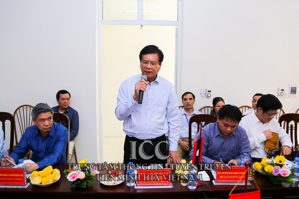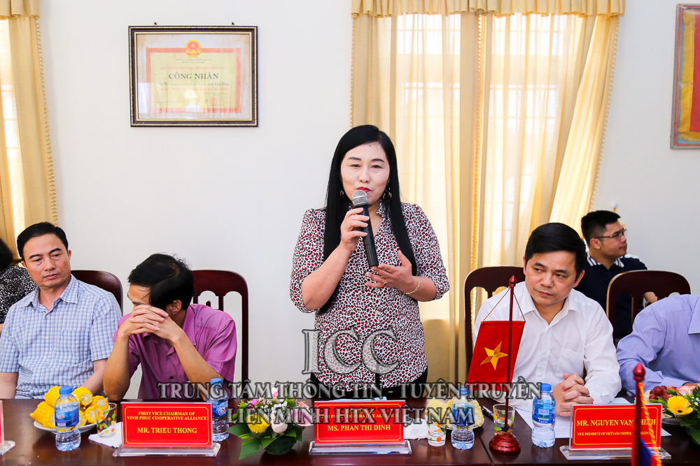 Tham gia đoàn công tác có đồng chí Bouasone Bouphavanh, Nguyên ủy viên Bộ Chính trị, nguyên Thủ tướng Chính phủ, Viện trưởng Viện nghiên cứu Kinh tế quốc gia Đảng nhân dân cách mạng Lào cùng lãnh đạo các Bộ, ngành Lào; đồng chí Phan Thị Định, Chủ tịch Liên minh HTX tỉnh Vĩnh Phúc; đồng chí Lê Thị Hương, Chủ tịch HĐQT, giám đốc HTX dịch vụ nông nghiệp Nhân Lý xã Phú Xuân cùng đại diện lãnh đạo văn phòng, các Ban tham mưu Liên minh HTX Việt Nam.