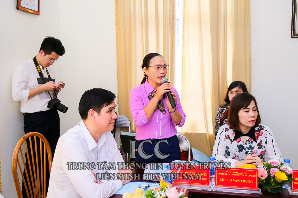 Đồng chí Phan Thị Định, Chủ tịch Liên minh HTX tỉnh Vĩnh Phúc phát biểu tại buổi làm việc