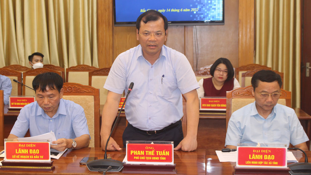 Làm việc với đoàn có đồng chí Phan Thế Tuấn, Phó Chủ tịch UBND tỉnh Bắc Giang cùng đại diện lãnh đạo một số sở, ngành, đại diện HTX trên địa bàn.