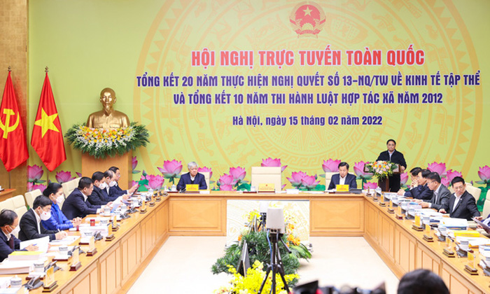 Chủ trì và phát biểu chỉ đạo Hội nghị trực tuyến toàn quốc Tổng kết 20 năm thực hiện Nghị quyết số 13-NQ/TW về kinh tế tập thể và 10 năm thi hành Luật Hợp tác xã năm 2012 vào sáng 15/02/2022, Thủ tướng Phạm Minh Chính yêu cầu tiếp tục nghiên cứu, xây dựng cơ chế, chính sách phù hợp với tình hình mới và thực tiễn hiện nay.
