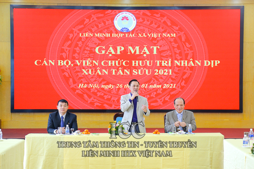Trong không khi vui mừng của cả nước chào đón Xuân mới Tân Sửu năm 2021, sáng ngày 26/01, tại Hà Nội, Liên minh HTX Việt Nam long trọng tổ chức gặp mặt các đồng chí nguyên là lãnh đạo, cán bộ, người lao động Liên minh HTX Việt Nam đã nghỉ hưu qua các thời kỳ. Đồng chí Nguyễn Mạnh Cường, Bí thư Đảng uỷ, Phó Chủ tịch Liên minh HTX Việt Nam chủ trì buổi gặp mặt. Tham dự có các đồng chí lãnh đạo Văn phòng, Trưởng, Phó các Ban tham mưu cơ quan Liên minh HTX Việt Nam.
