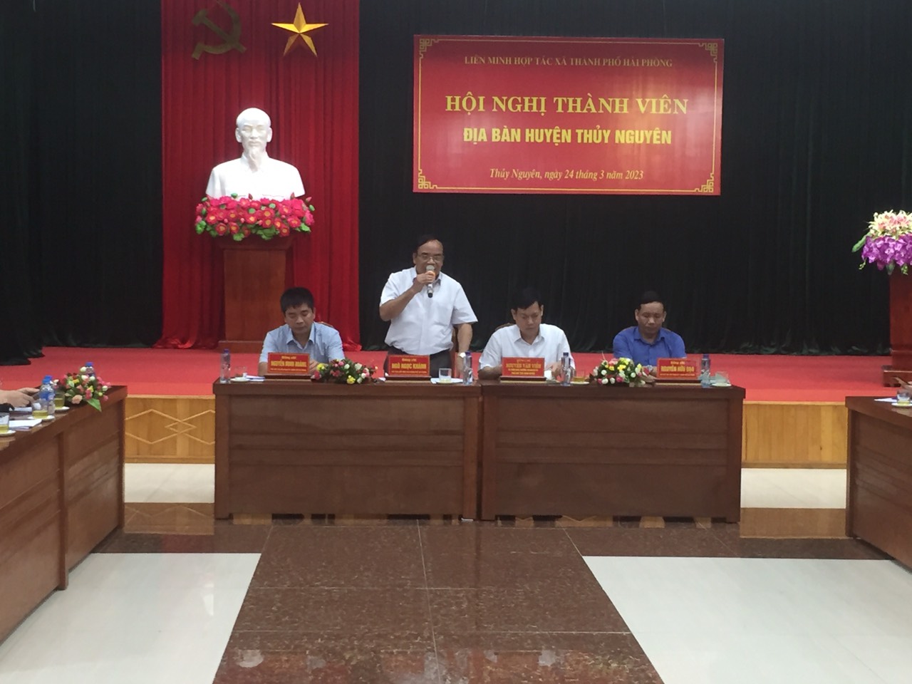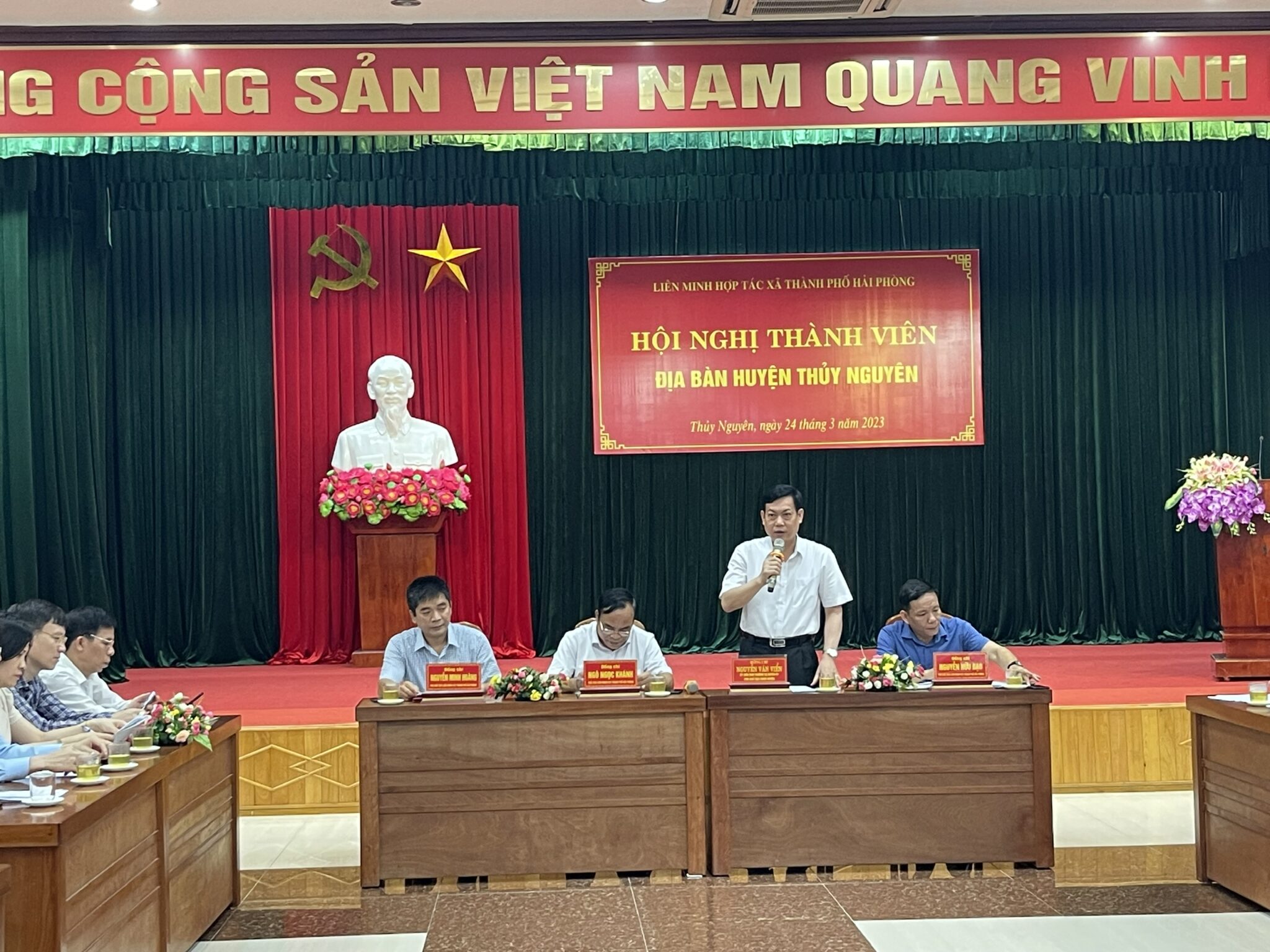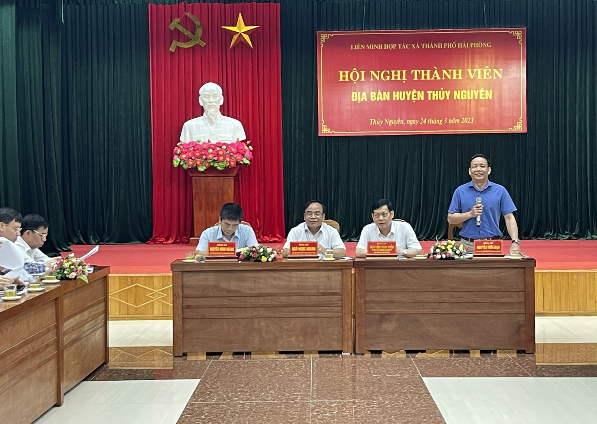 Ngày 24/3/2023, tại Trung tâm văn hóa thông tin huyện Thủy Nguyên (TP Hải Phòng), Liên minh Hợp tác xã (HTX) thành phố đã tổ chức Hội nghị thành viên địa bàn huyện Thủy Nguyên. Tham dự Hội nghị có đồng chí Ngô Ngọc Khánh, Chủ tịch Liên minh HTX thành phố, các đồng chí Thường trực Liên minh; đồng chí Nguyễn Văn Viển, Phó Chủ tịch UBND huyện Thủy Nguyên; đại diện các sở, ngành: Kế hoạch và Đầu tư, Khoa học Công nghệ, Nông nghiệp và Phát triển nông thôn, Công Thương, Hội nông dân thành phố và các phòng chuyên môn của huyện, đại diện lãnh đạo các HTX, DN thành viên Liên minh trên địa bàn huyện Thủy Nguyên...