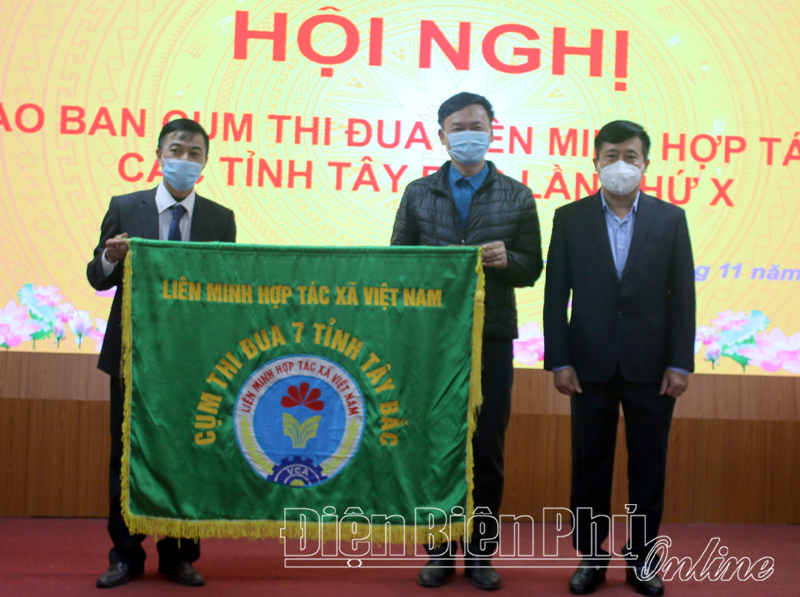 Tại hội nghị, Liên minh HTX tỉnh Điện Biên đã trao Cờ luân lưu Cụm thi đua Liên minh HTX các tỉnh Tây Bắc lần thứ XI cho Liên minh HTX tỉnh Hòa Bình – Cụm trưởng Cụm thi đua năm 2022.