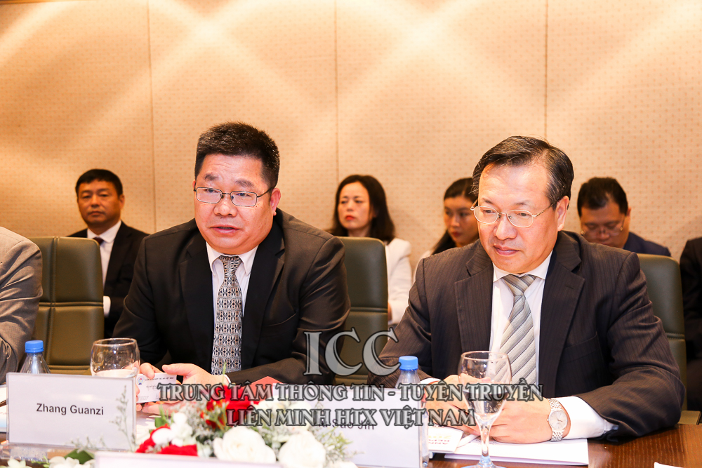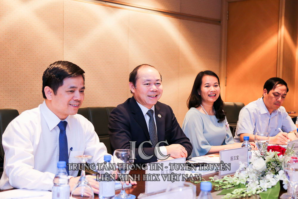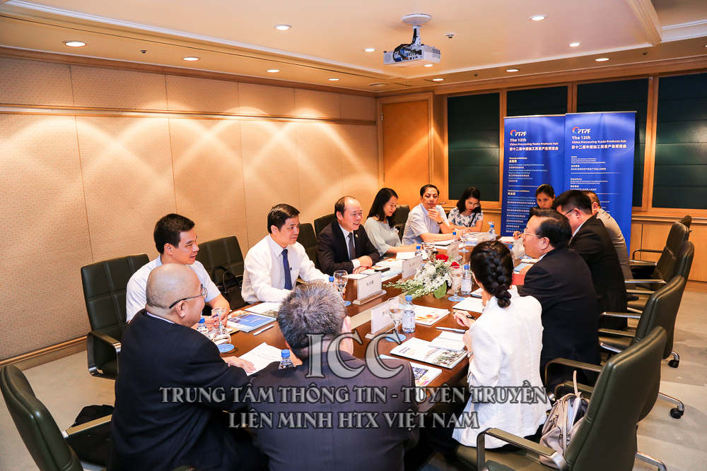 Lãnh đạo Liên minh HTX Việt Nam hội đàm với ông Trương Quán Tử- Ủy viên Thường trực, Phó Chủ tịch UBND thành phố Đông Quản, tỉnh Quảng Đông và tham tán Thương mại Trung Quốc tại Việt Nam