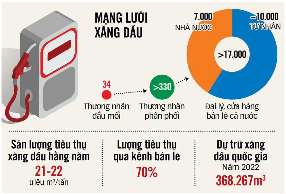 Tuy nhiên, theo ông Dũng, với 34 thương nhân đầu mối xăng dầu hoạt động hiện nay, không đủ nguồn lực tài chính mạnh để đảm bảo nguồn cung cho thị trường. Vì vậy, để chia lửa cho các đầu mối, đặc biệt khi thị trường khó khăn, giá lên cao như thời gian qua, cần duy trì hệ thống phân phối.