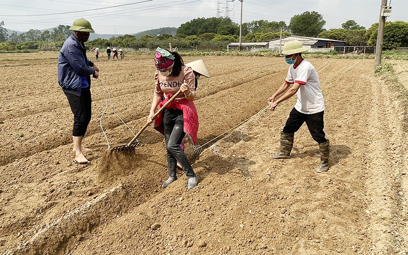 Người dân TP Chí Linh làm đất gieo trồng vụ đông xuân.