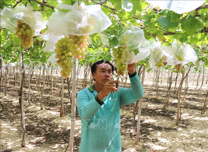 Ông Trần Thái Truyện trồng giống nho NH 01-152 liên kết theo mô hình cánh đồng lớn với Hợp tác xã dịch vụ tổng hợp nông nghiệp Thái An (xã Vĩnh Hải, huyện Ninh Hải).