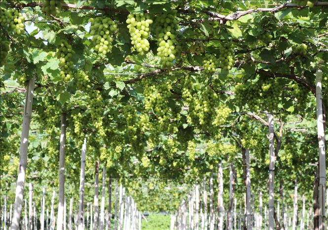 Mô hình cánh đồng lớn trồng nho của Hợp tác xã dịch vụ tổng hợp nông nghiệp Thái An (xã Vĩnh Hải, huyện Ninh Hải).