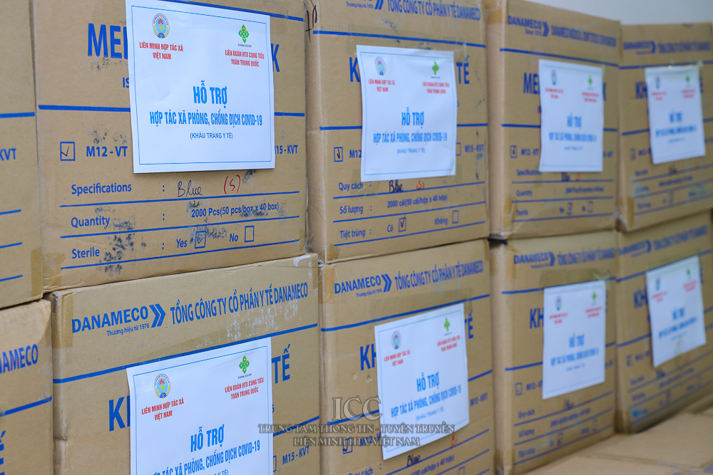 Thời gian qua, đại dịch COVID-19 đã ảnh hưởng trực tiếp đến mọi mặt đời sống xã hội, nhất là hoạt động sản xuất, kinh doanh ở nhiều nước trên thế giới, đồng cảm với những khó khăn do đại dịch để lại, Liên đoàn HTX Cung Tiêu Trung Quốc đã tặng quà hỗ trợ cho bà con HTX tại Việt Nam với tinh thần tương thân tương ái, động viên tinh thần, đảm bảo cho bà con HTX ổn định phát triển sản xuất. Liên đoàn HTX Cung Tiêu Trung Quốc đã hỗ trợ khẩu trang cho bà con HTX khu vực Tây Bắc Sông Hậu, Tây Nam Sông Hậu.