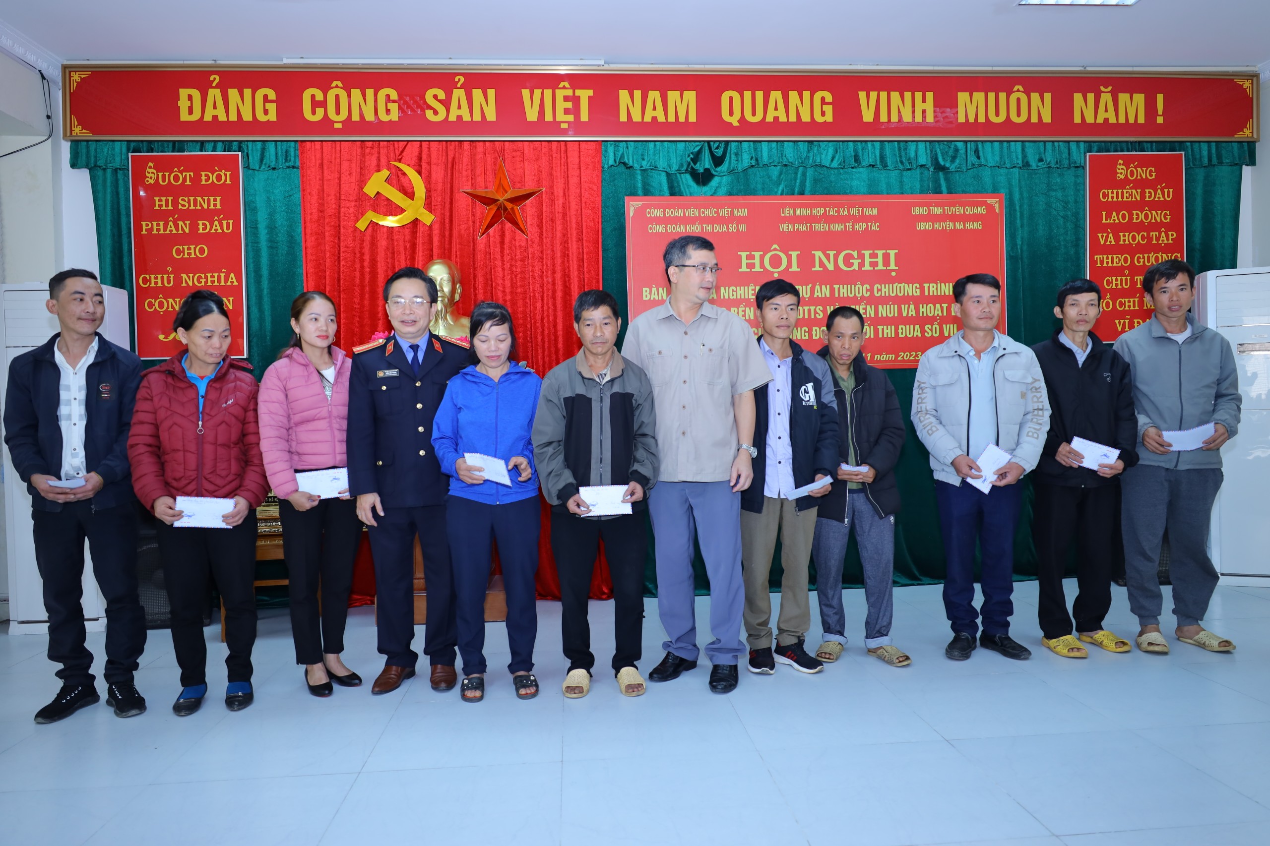 Thực hiện Kế hoạch số 02-KH/KHTĐVII ngày 20 tháng 3 năm 2023 của Khối thi đua số VII năm 2023, đã được thông qua tại Hội nghị ký kết giao ước thi đua ngày 24/3/2023 tại cơ quan Thanh tra Chính phủ, ngày 24/11 Công đoàn Liên minh Hợp tác xã Việt Nam phối hợp với Viện phát triển kinh tế hợp tác, UBND huyện Na Hang tổ chức hoạt động tình nghĩa của Khối thi đua số VII và tổ chức Hội nghị bàn giao nghiệm thu công tác Hỗ trợ hợp tác xã theo chương trình mục tiêu quốc gia tại huyện Na Hang, tỉnh Tuyên Quang năm 2023.
