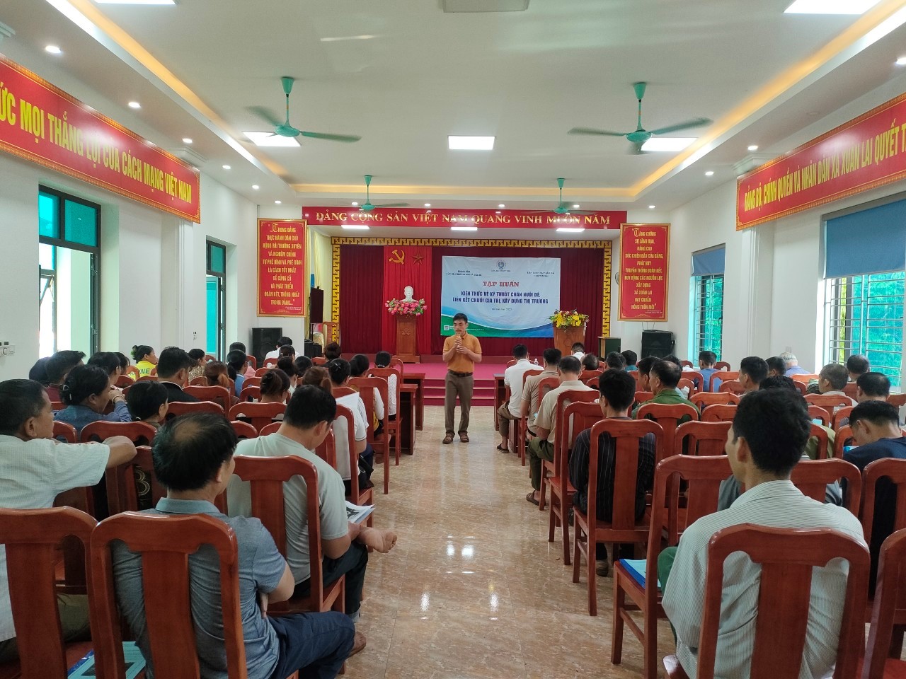 Quang cảnh lớp tập huấn kiến thức kỹ thuật chăn nuôi dê liên kết chuỗi giá trị